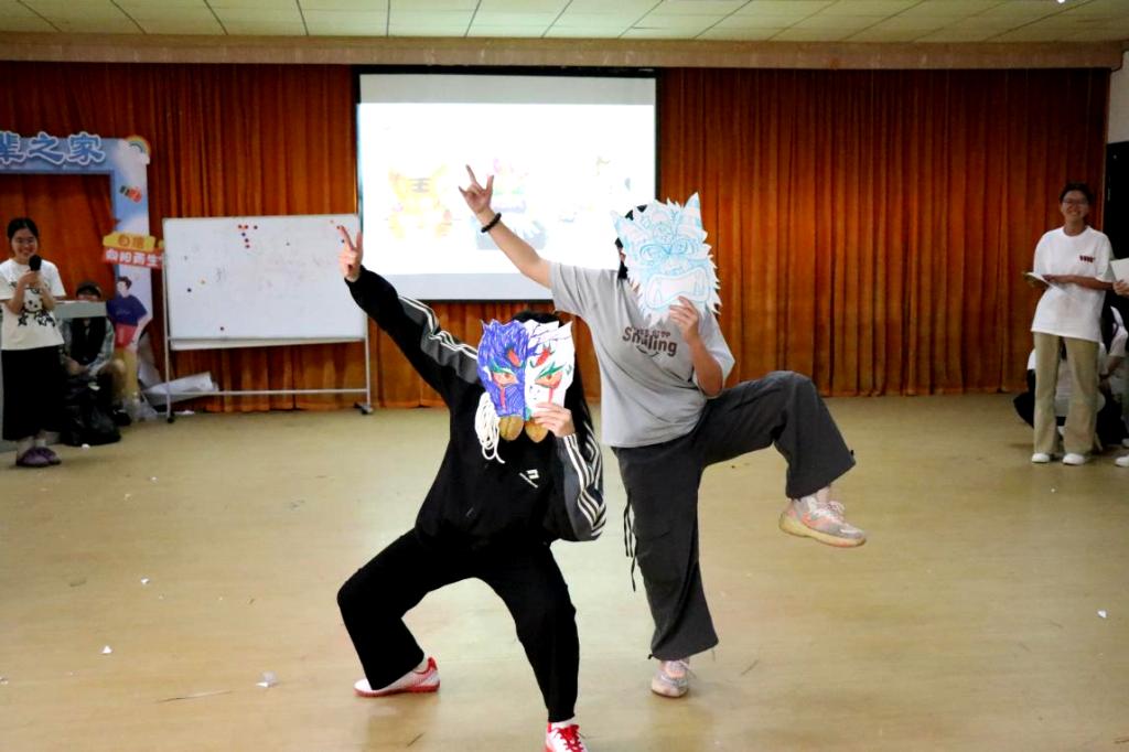 最具创意与治愈力的情绪脸谱秀环节,让内心情绪得以具象呈现。同学们借助卡纸、颜料、彩笔等材料,精心制作专属情绪面具,大胆勾勒内心最真实的感受,直面被忽略的情绪与心声。创作完成后,大家在小组内分享面具背后的故事,并以创意走秀的形式自信展示,在彼此看见与理解中收获温暖与力量。